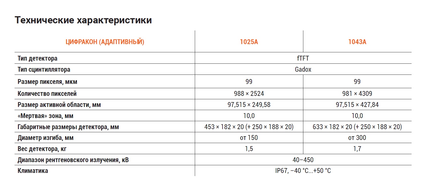 Плоскопанельные детекторы ЦИФРАКОН на основе аморфного Si и сцинтиллятора Gadox со встроенным модулем WiFi имеют различия в размерах рабочего поля, и размерах пикселя: